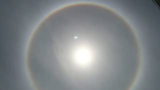 Masyarakat di balai karangan, Sanggau, Kalimantan barat di buat heboh karena matahari di kelilingi cincin pelangi yg amat indah dan langka, kejadian ini baru terjadi tadi pagi sampai sekarang...